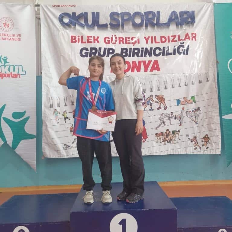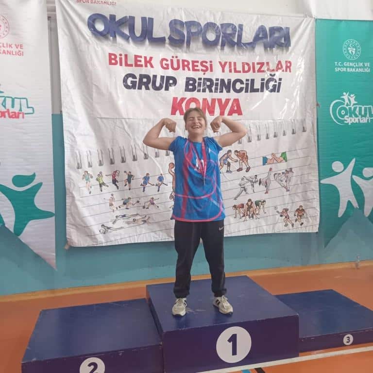 OKULUMUZ 7. SINIF ÖĞRENCİSİ AYŞE BÜYÜKKAÇAR 2024-2025 OKUL SPORLARI KAPSAMINDA KONYA SEYDİŞEHİR'DE DÜZENLENEN BİLEK GÜREŞİ YILDIZLAR GRUP BİRİNCİLİĞİ MÜSABAKALARINDA SAĞ KOL 45 KİLODA 1. OLMUŞTUR. ÖĞRENCİMİZİ VE EMEĞİ GEÇEN BEDEN EĞİTİMİ ÖĞRETMENİMİZİ TEBRİK EDERİZ.
